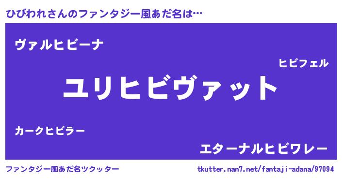 | 男性向けラノベタイトル風あだ名 | 『転生したらひびわれだった件』 |