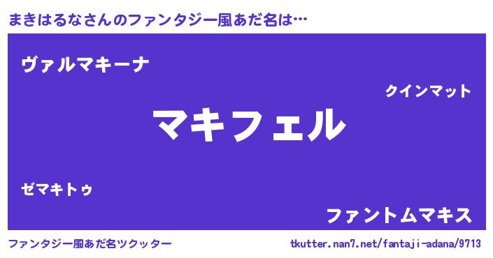 | 男性向けラノベタイトル風あだ名 | 『マキハルナアートオンライン』 |