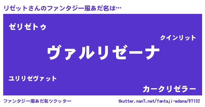 | ヒーロー風カッコイイあだ名 | 『仮面リゼダー』『超時空戦士リゼット』 |