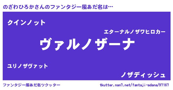 | 男性向けラノベタイトル風あだ名 | 『この素晴らしい世界にのざわひろかを!』 |
