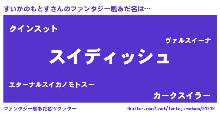 | 胡散臭い通販商品みたいなあだ名 | 『前代未聞の水素水…その名も「すいかのもとす」』 |