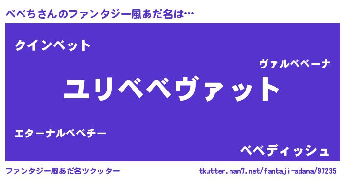 | 男性向けラノベタイトル風あだ名 | 『ベベチスレイヤー』『魔弾の王とべべち』 |