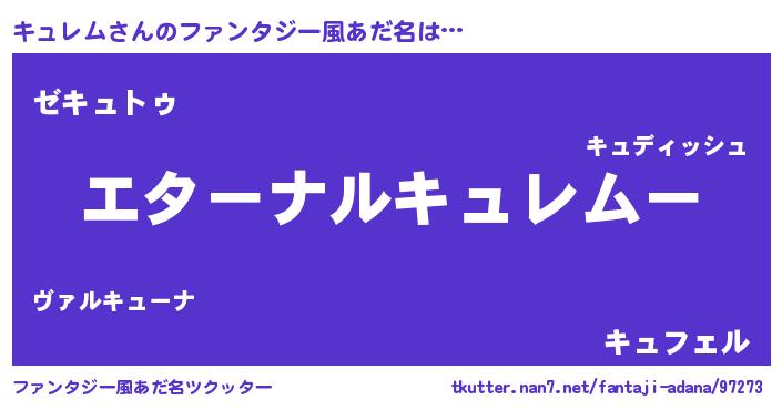 | 意味不明あだ名 | 『キュレムフォーエバー』『自称キュレム』 |