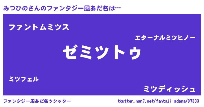 | ヒーロー風カッコイイあだ名 | 『最強戦士ミツヒノ』『炎刃騎士ミツ』 |