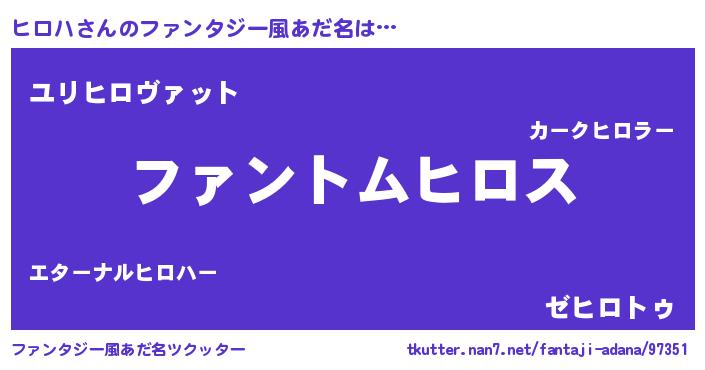 | ヒーロー風カッコイイあだ名 | 『幻影騎士ヒロ』『ウルトラ戦士ヒロハ』 |