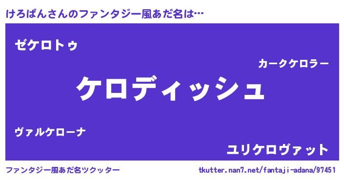 | 男性向けラノベタイトル風あだ名 | 『けろぱんという概念が存在しない退屈な世界 』 |