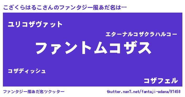 | 男性向けラノベタイトル風あだ名 | 『こざくらはるこの嫁は女の子じゃないと思った?』 |