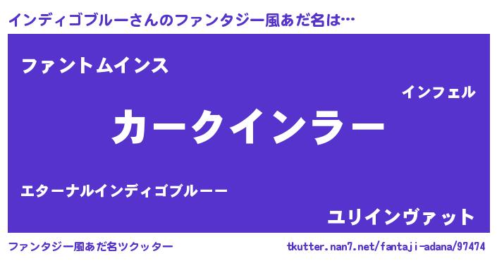 | 男性向けラノベタイトル風あだ名 | 『うちのインディゴブルーが世界を掌握している!』 |