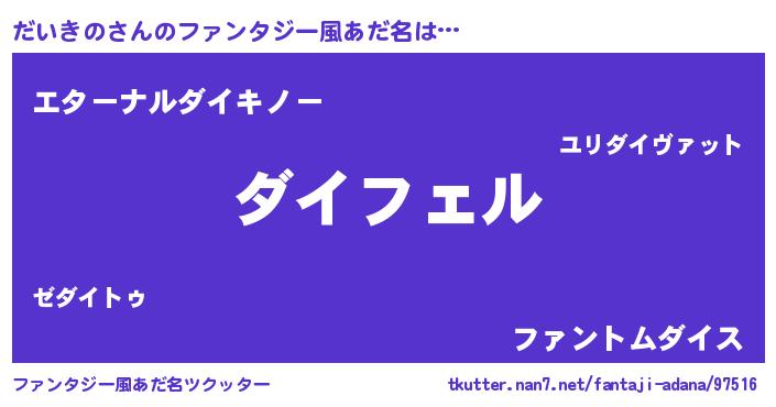 | 胡散臭い通販商品みたいなあだ名 | 『億万長者になれる霊験あらたかなお札…その名も「だいきの」』 |