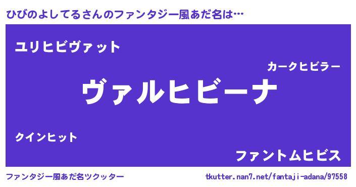 | 男性向けラノベタイトル風あだ名 | 『魔弾の王とひびのよしてる』 |