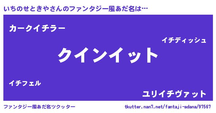 | 男性向けラノベタイトル風あだ名 | 『ノーゲーム・ノーイチノセトキヤ』 |