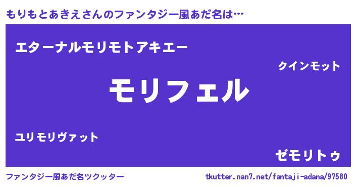 | 男性向けラノベタイトル風あだ名 | 『モリモトアキエアートオンライン』 |