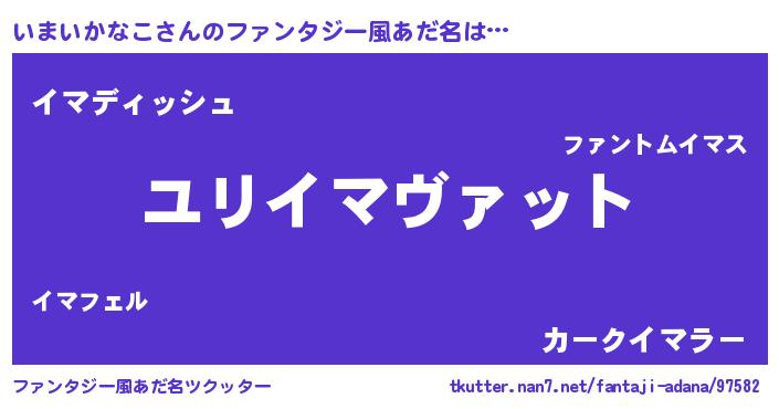 | ヒーロー風カッコイイあだ名 | 『ネオイマイカナコ』『魔戒騎士イマ』 |