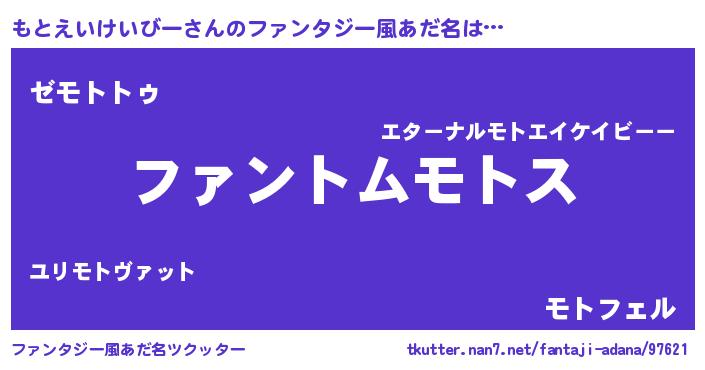 | 意味不明あだ名 | 『とにかく怪しいもとえいけいびー』 |