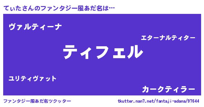 | 女子向けラノベタイトル風あだ名 | 『てぃた姫と円卓の騎士』 |