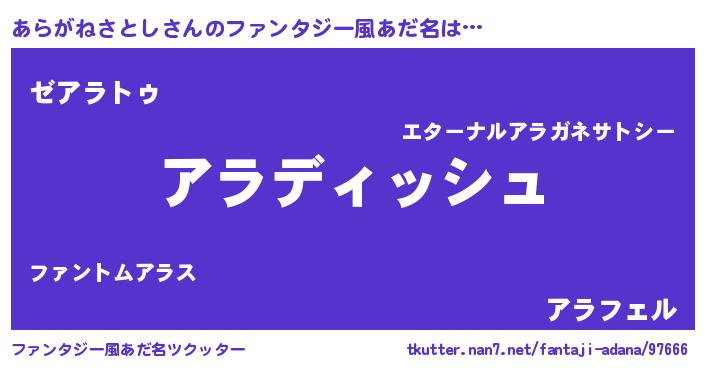 | ヘコむあだ名 | 『あらがねさとし(遠い目)』『あらにゅー』 |