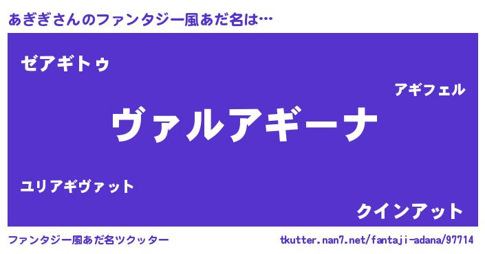 | 伝説のあだ名 | 『救世主となる錬金術士あぎぎ』 |