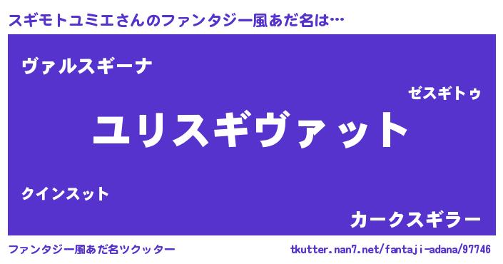 | 男性向けラノベタイトル風あだ名 | 『スギモトユミエスレイヤー』 |