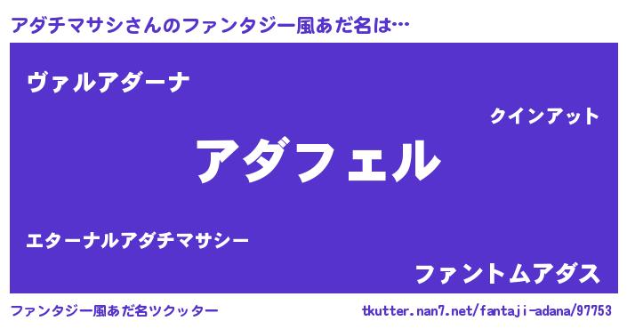 | ヒーロー風カッコイイあだ名 | 『スーパーアダチマサシ』『仮面アダダー』 |