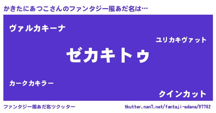 | 男性向けラノベタイトル風あだ名 | 『Re:かきたにあつこから始める異世界生活』 |