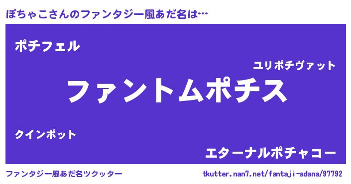 | ヒーロー風カッコイイあだ名 | 『幻影騎士ポチ』『スーパーポチャコ』 |