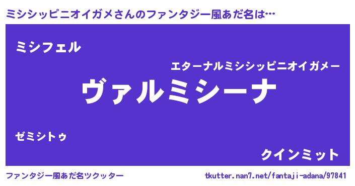 | 男性向けラノベタイトル風あだ名 | 『この素晴らしい世界にミシシッピニオイガメを!』 |