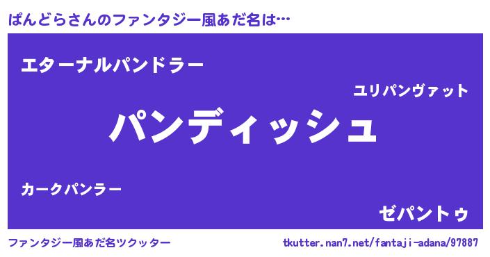 | ヒーロー風カッコイイあだ名 | 『ネオパンドラ』『ウルトラぱんどらマン』 |
