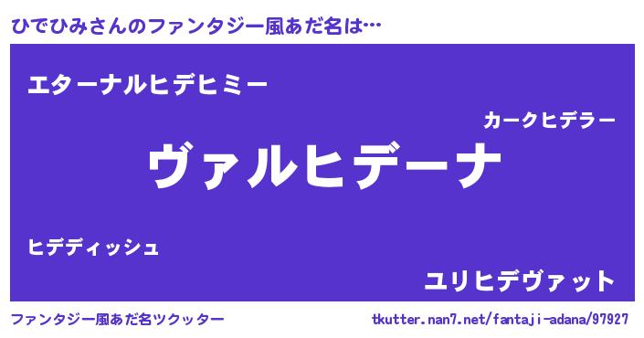 | 男性向けラノベタイトル風あだ名 | 『この素晴らしい世界にひでひみを!』 |