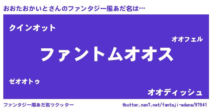 | 男性向けラノベタイトル風あだ名 | 『おおたおかいとの嫁は女の子じゃないと思った?』 |