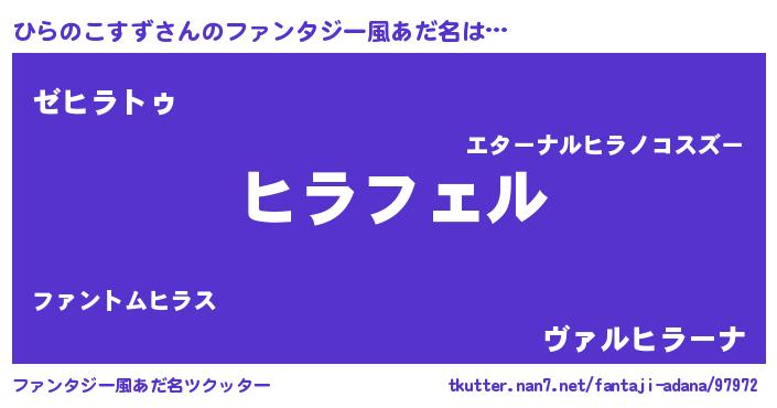 | ヒーロー風カッコイイあだ名 | 『スーパーヒラノコスズ』『仮面ヒラダー』 |