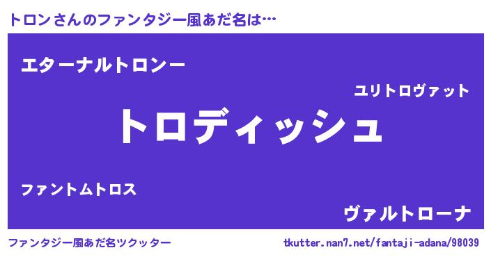 | 意味不明あだ名 | 『永久保存トロン』『トロンフォーエバー』 |