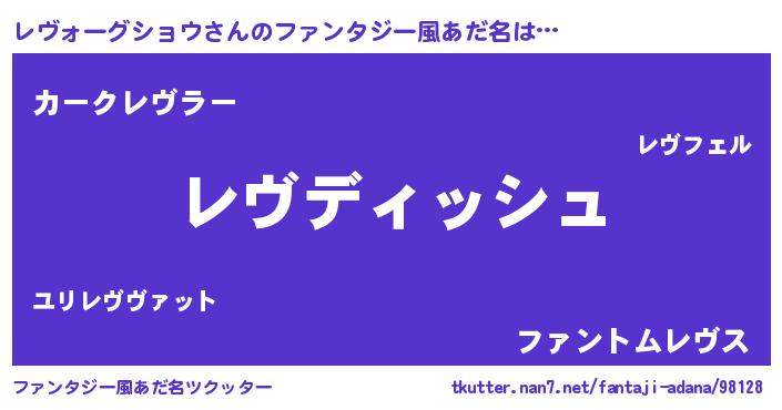 | 男性向けラノベタイトル風あだ名 | 『レヴォーグショウという概念が存在しない退屈な世界 』 |