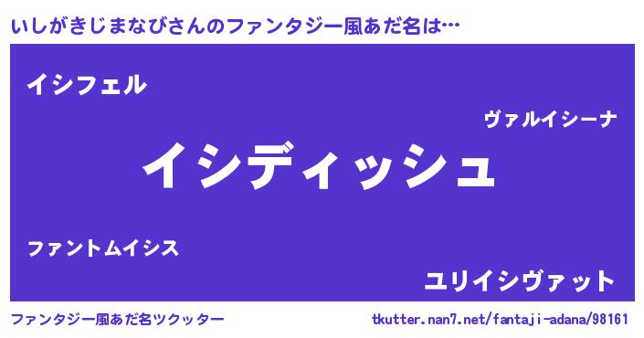 | ヘコむあだ名 | 『いしがきじまなび(笑)』『いしにゅー』 |
