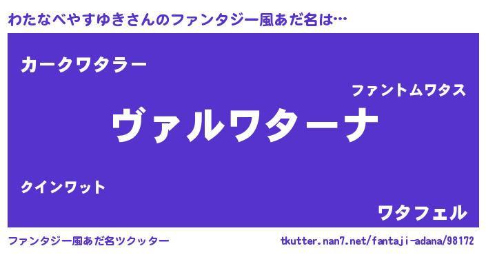 | 女子向けラノベタイトル風あだ名 | 『悪役わたなべやすゆきに転生したようですが、知った事ではありません』 |