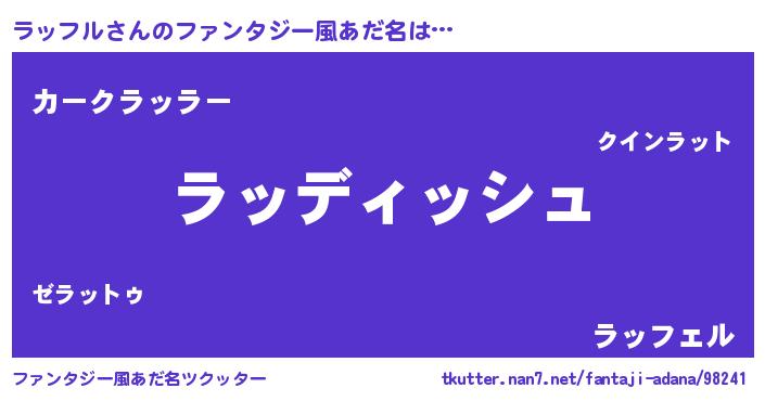 | ヒーロー風カッコイイあだ名 | 『ネオラッフル』『スーパーラッフル』 |