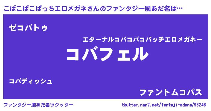 | 男性向けラノベタイトル風あだ名 | 『コバコバコバッチエロメガネアートオンライン』 |