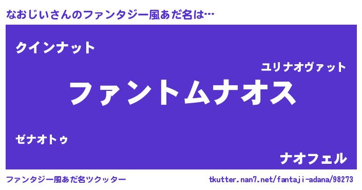 | 男性向けラノベタイトル風あだ名 | 『なおじいの嫁は女の子じゃないと思った?』 |