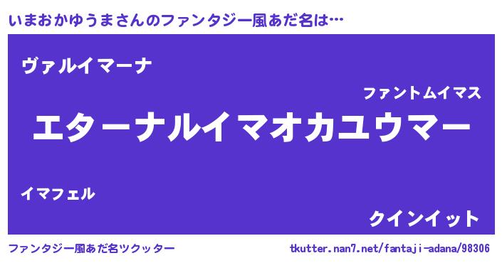 | 男性向けラノベタイトル風あだ名 | 『やはりいまおかゆうまの青春ラブコメはまちがっている 』 |