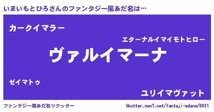 | 男性向けラノベタイトル風あだ名 | 『魔弾の王といまいもとひろ』 |