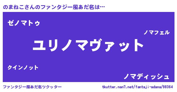 | ヘコむあだ名 | 『のまねこ(震え声)』『のまもー』 |