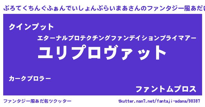 | 料理風あだ名 | 『ぷろてくちんぐふぁんでいしょんぷらいまあごはん』 |