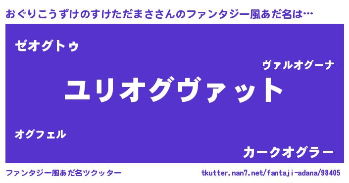 | 男性向けラノベタイトル風あだ名 | 『おぐりこうずけのすけただまさ~年齢イコール彼女いない歴の魔法使い~』 |