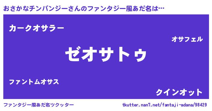 | 男性向けラノベタイトル風あだ名 | 『Re:おさかなチンパンジーから始める異世界生活』 |