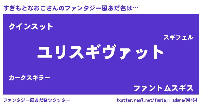 | 男性向けラノベタイトル風あだ名 | 『すぎもとなおこ~年齢イコール彼女いない歴の魔法使い~』 |