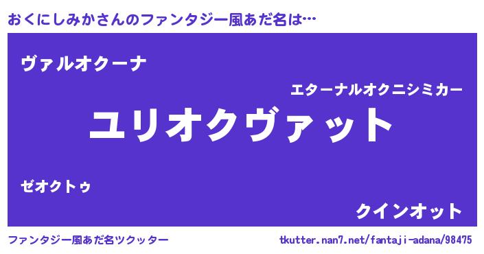 | 伝説のあだ名 | 『魔王と互角に渡り合う占い師おくにしみか』 |