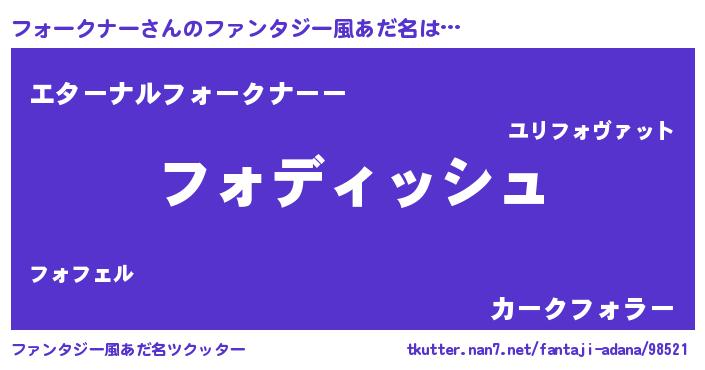 | 男性向けラノベタイトル風あだ名 | 『誰もが恐れるあのフォークナーが、ぼくの専属メイドになるようです。』 |