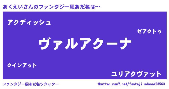 | 男性向けラノベタイトル風あだ名 | 『魔弾の王とあくえい』 |