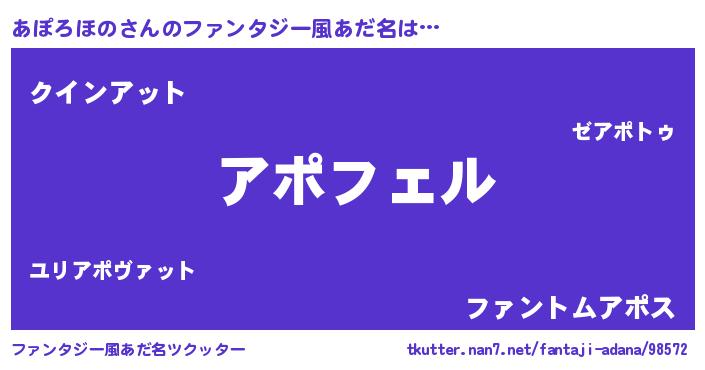 | 意味不明あだ名 | 『ペロリンあぽろほの』『自称あぽろほの』 |