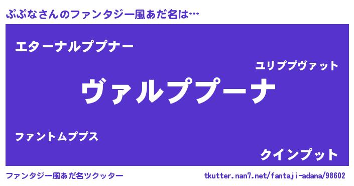| ポケモン風あだ名 | 『プープイ』『ププナダネ』 |