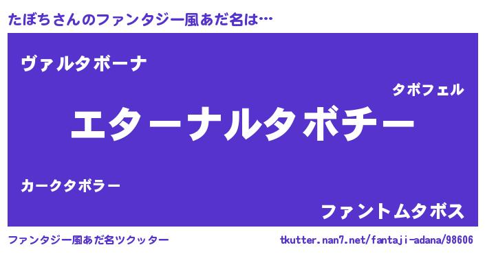 | ヒーロー風カッコイイあだ名 | 『ウルトラたぼちマン』『仮面タボダー』 |